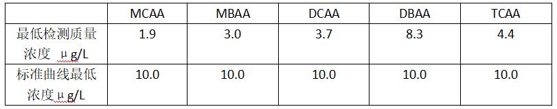 1.5种卤代乙酸检测限