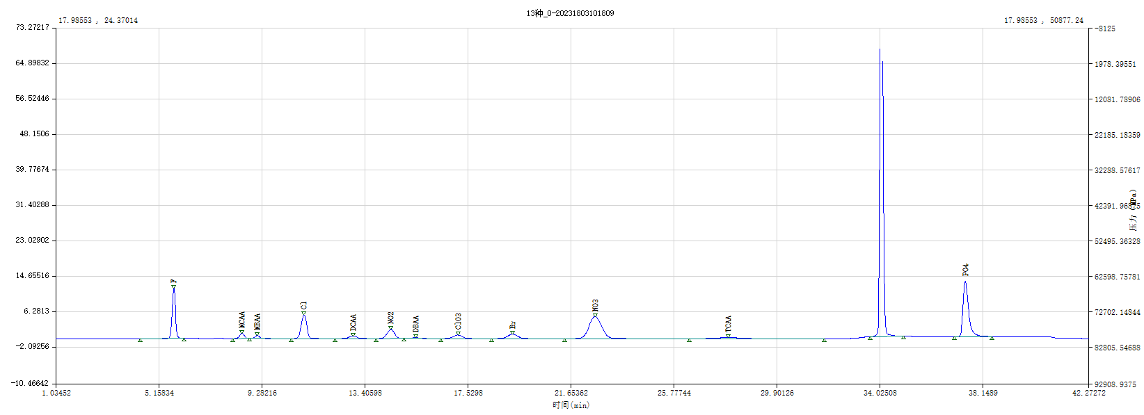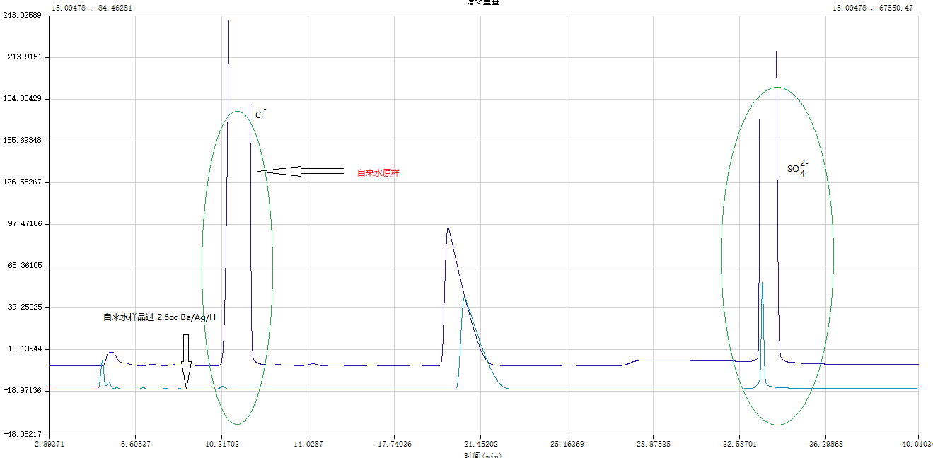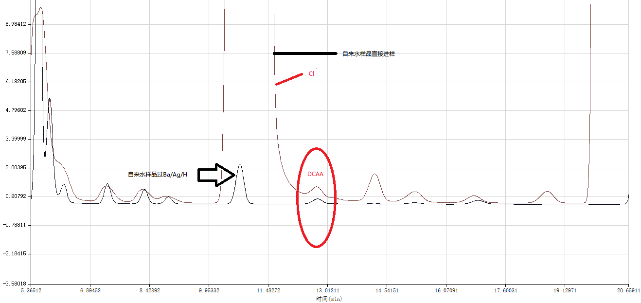 图6 自来水样品过Ba/Ag/H 预处理柱进样谱图