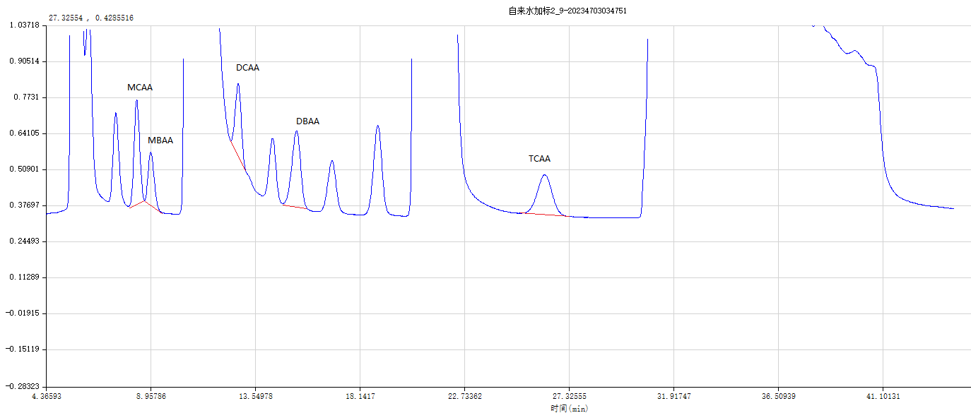 图5 自来水样品过Ba/Ag/H 预处理柱进样谱图